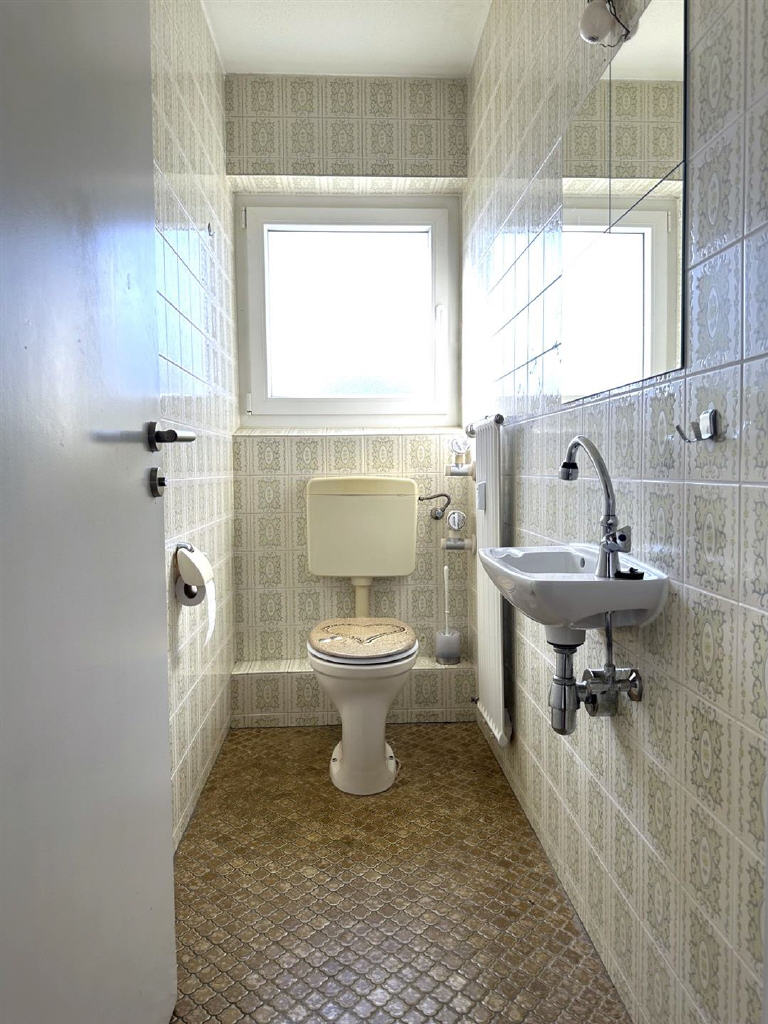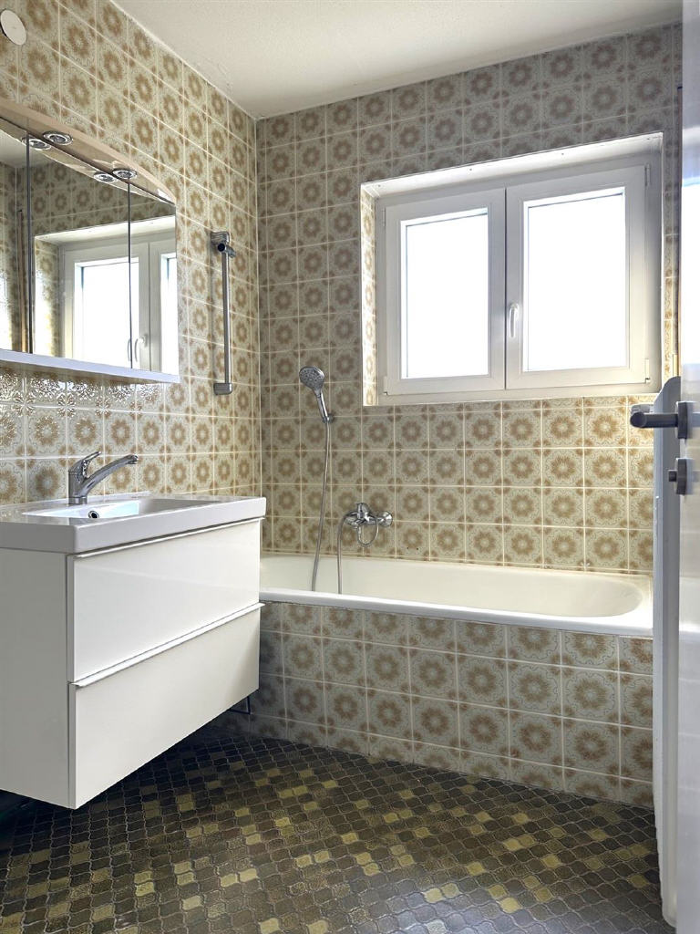 Die separate Küche ist mit einer funktionalen Einbauküche ausgestattet und bietet ausreichend Raum, um gemeinsam zu kochen. Das Tageslichtbad mit Badewanne sowie ein separates WC sorgen für zusätzlichen Komfort im Alltag.