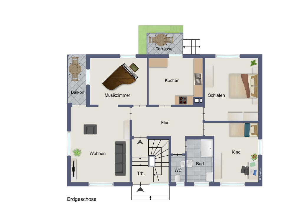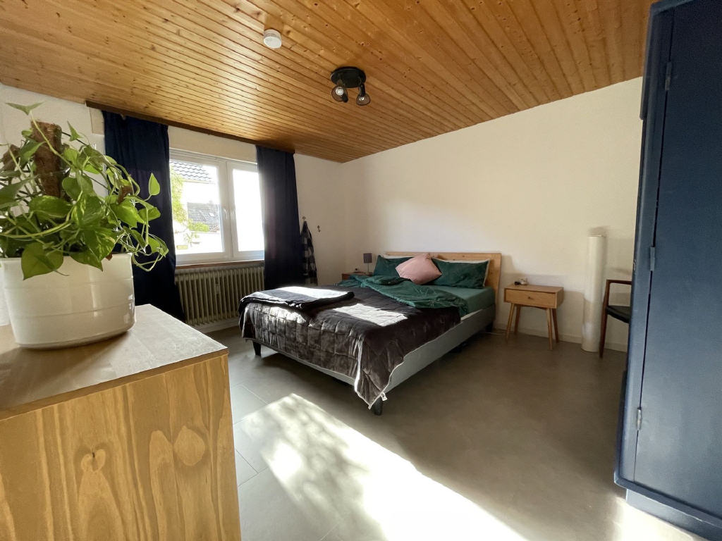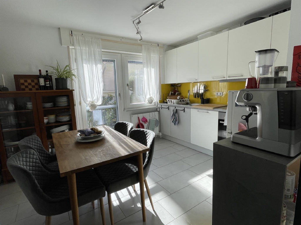 Die Erdgeschosswohnung mit 3-4 Zimmern ist seit 01.09.2024 unbefristet vermietet und wurde davor umfassend renoviert. Sie überzeugt durch eine durchdachte Raumaufteilung: Zwei geräumige Schlafzimmer, ein Tageslichtbad mit Dusche sowie eine separate Toilette bieten hohen Wohnkomfort. Der Flur führt in die Küche mit Zugang zur Südwestterrasse mit Treppe in den Hof und herrlichen Garten.
