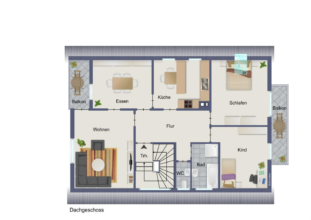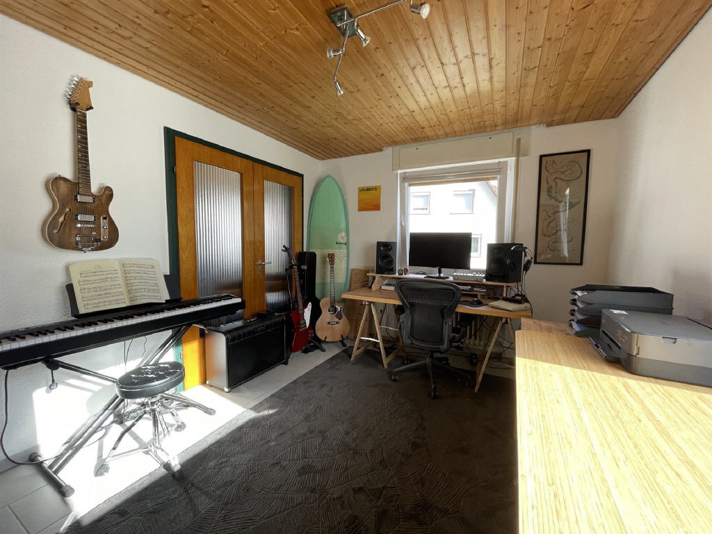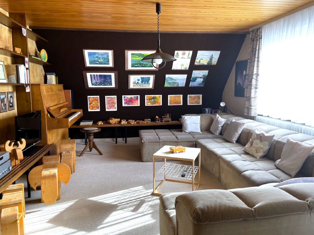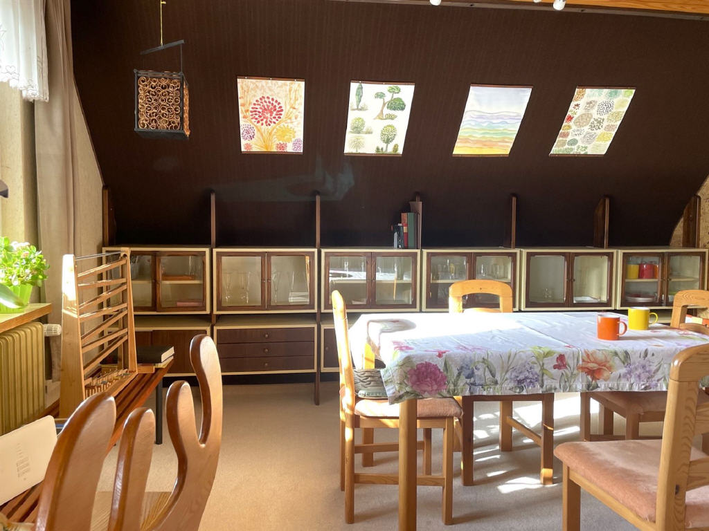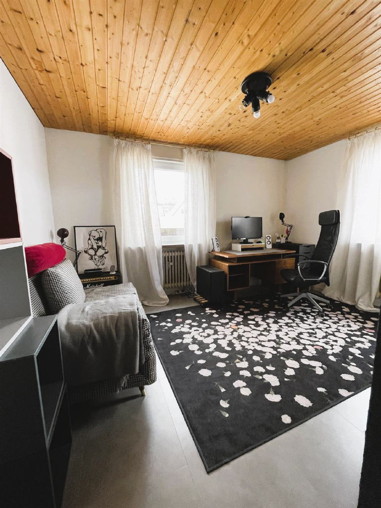 Im Obergeschoss befindet sich eine identisch geschnittene, 3- bis 4-Zimmer-Wohnung, die ihren ganz eigenen Charme durch Dachschrägen entfaltet. Zusätzlich bietet sie Zugang zum unausgebauten Speicher sowie zu einem weiteren Balkon in Nordwestausrichtung, der zum Bestaunen des Sonnenuntergangs einlädt.