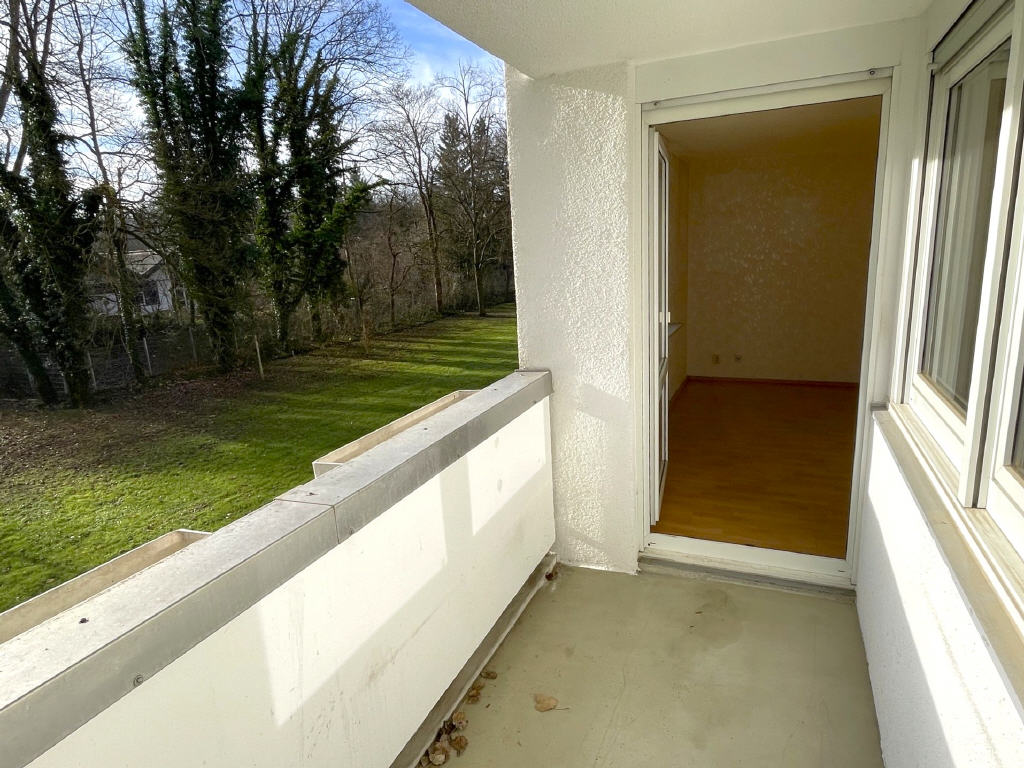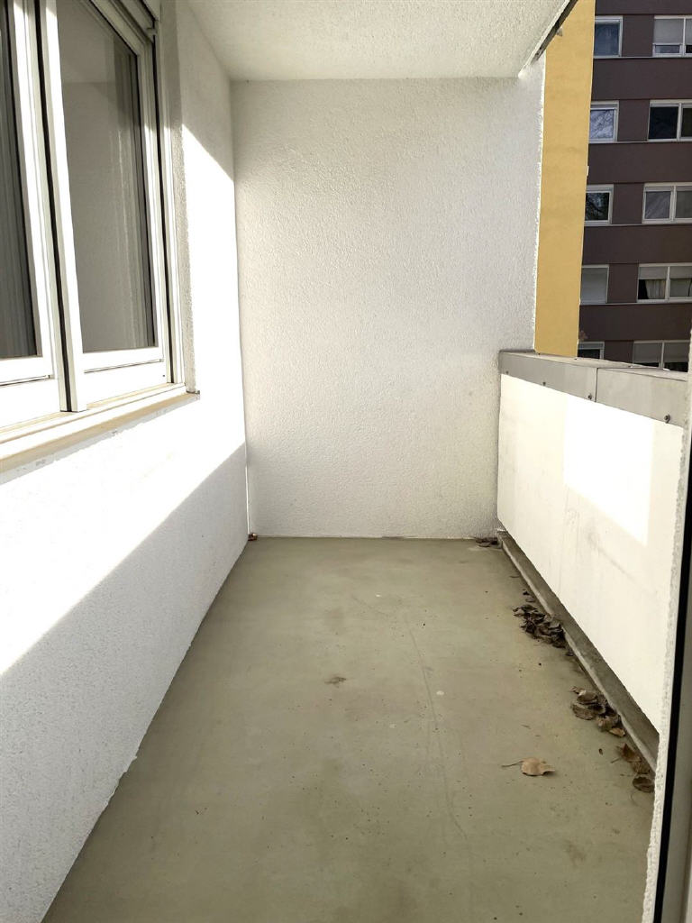 Vom Wohnzimmer aus gelangen Sie direkt auf den nach Süden ausgerichteten Balkon, auf dem Sie die Sonne genießen können.